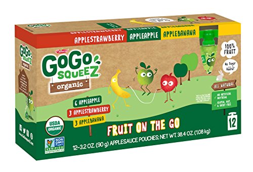- Organic applesauce on the GoGo made from 100% real fruit in portable, BPA-free, squeezable pouches