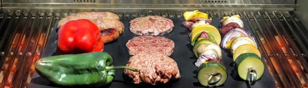- Durable and reusable. Designed to be durable and dishwasher safe. These mats are heat resistant up to 500oF! Perfect for grill meat, steak, burgers ,vegetables, fish, shrimp, pizza, even pancakes, bacon and eggs