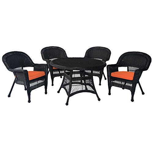 Jeco 5 Piece Wicker Dining Set with with Orange Cushions – Link