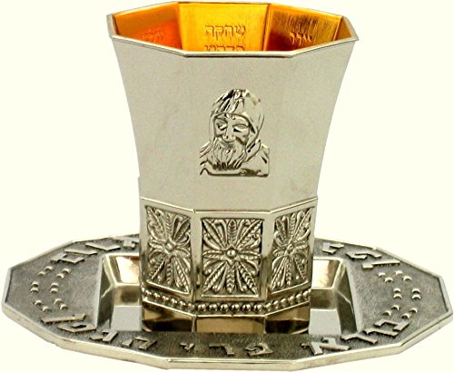 “Beautiful Kabbalah mystical silver plated Kiddush cup with the known Kabbalah master image, Baba sali, engraved on it. The inner part of the cup is engraved with 64 mystical holy words derived from the letters of the four rivers of the garden of eden. The cup comes with a matching saucer that carries the Hebrew blessing “Bore Pri Hagafen”- Who creates the fruit of the vine. the cup has an hexagonal design with a bottom diameter of 2″ and a top diameter of 2.9″. height: 3.6″. saucer: 5″ diameter. weight: 302 gr. weight (including box): 465 gr. comes well wrapped in a gift box. Unique and beautiful! “