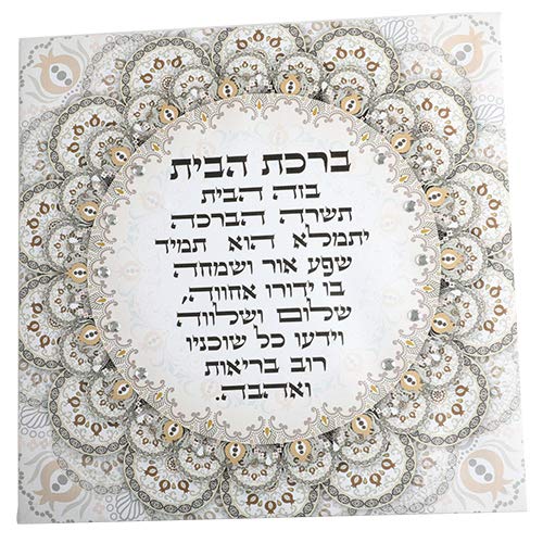 Judaica Wall Art Printed Canvas on Wood with Crystal Stones Hebrew Birkat Habayit Blessing for The Home – Link