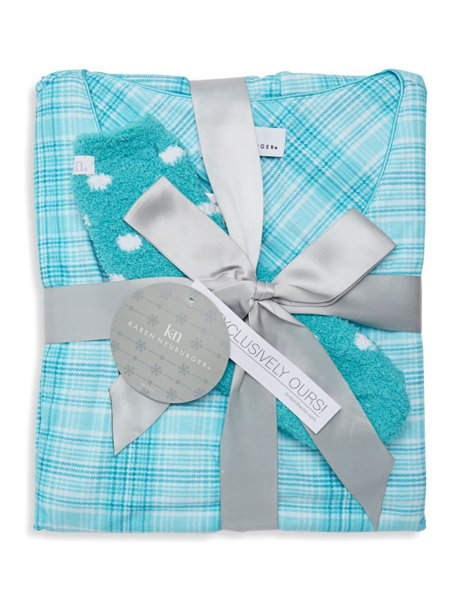 - Karen Neuburger Three-Piece Plaid Pajama & Booties Set – Plaid