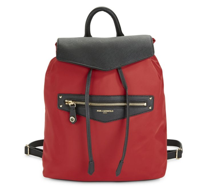 Karl Lagerfeld Paris Leather-Trimmed Nylon Drawstring Backpack- Link