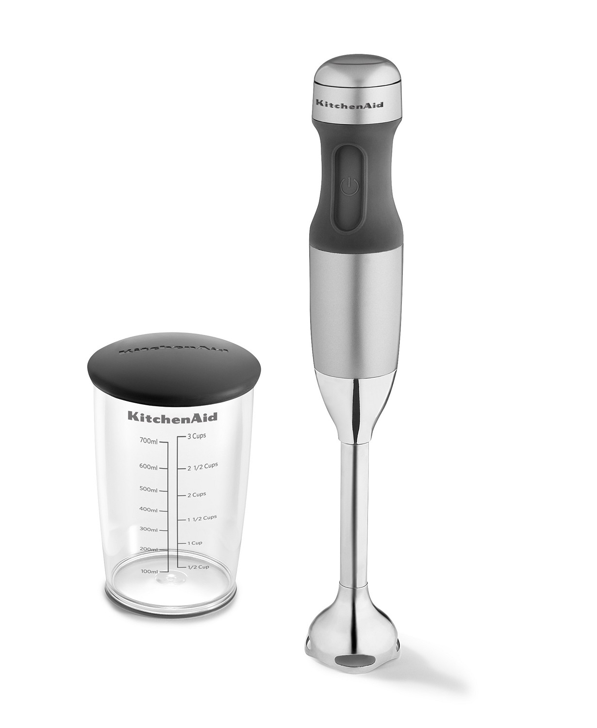 “Get a handle on the best blend. Fitting comfortably into the palm of your hand, this 2-speed blender operates at a near-silent level, while conquering each and every task you send its way. The soft grip handle commands control and precision within the 3-cup BPA-free blending pitcher with graduated measurement markings. 1-year hassle-free replacement warranty.”