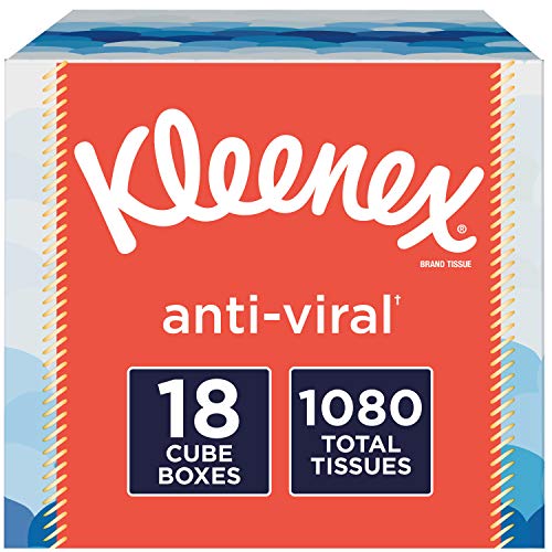 - Contains 18 cube boxes, 60 Kleenex Anti-Viral tissues per box (1,080 tissues total)