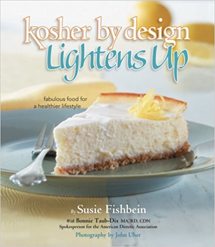 “This sixth volume in Susie Fishbein’s celebrated Kosher by Design cookbook series was crafted with your good health in mind! Kosher by Design Lightens Up is a gorgeous culinary guide, bursting with easy-to-do ideas for eating and feeling better. This cookbook teaches healthy cooking and food combining techniques, with special commentary by certified nutritional expert Bonnie Taub-Dix, spokesperson for the American Dietetic Assn. “