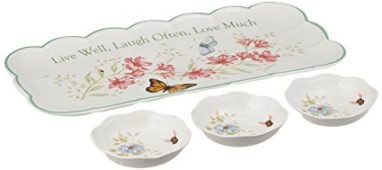 Lenox Butterfly Meadow Sentiment 4pc Hors D’Oeuvres Tray with Dipping Bowls – Link