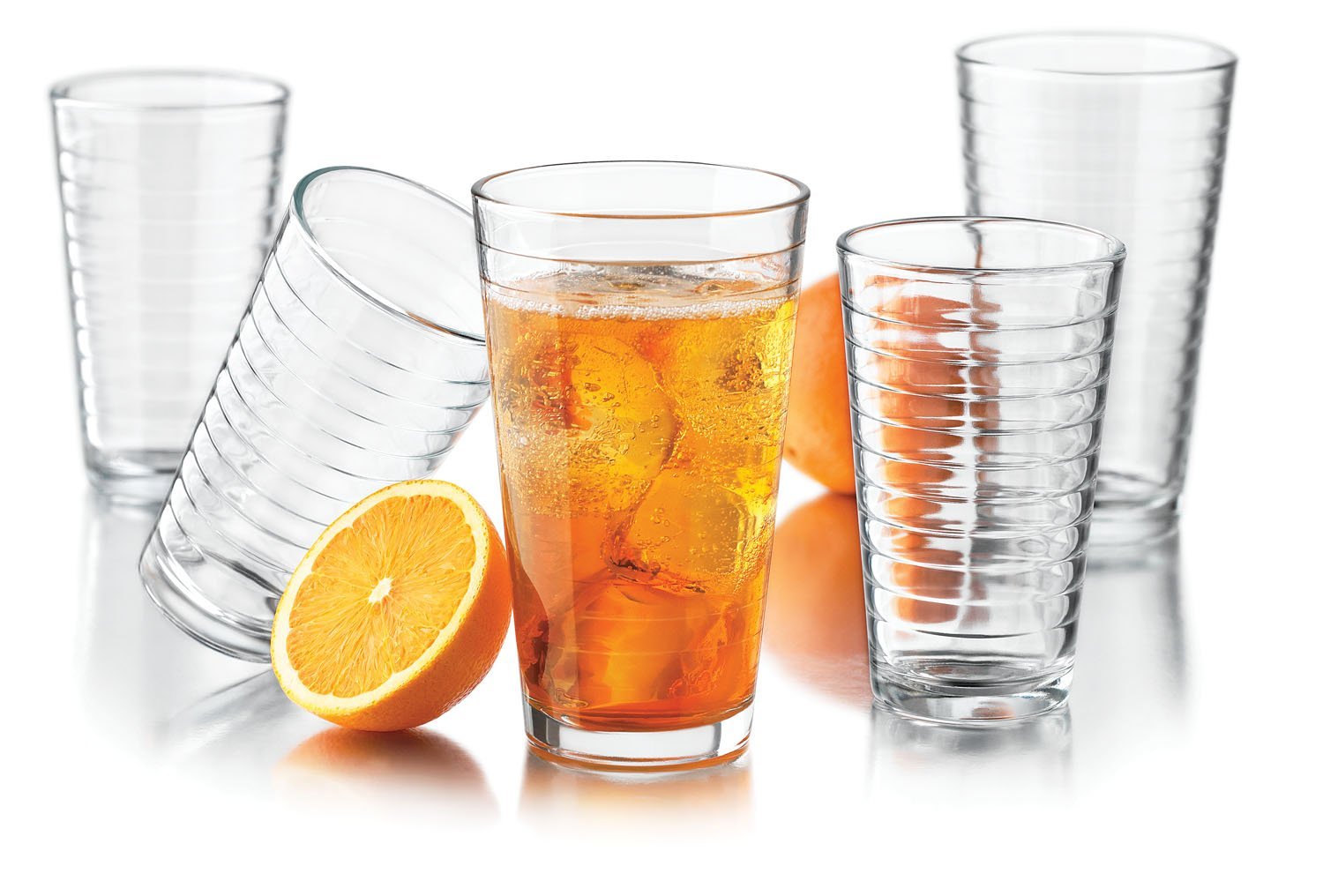 - Eight 10-1/2-ounce double old fashioned glasses and eight 15-3/4-ounce coolers