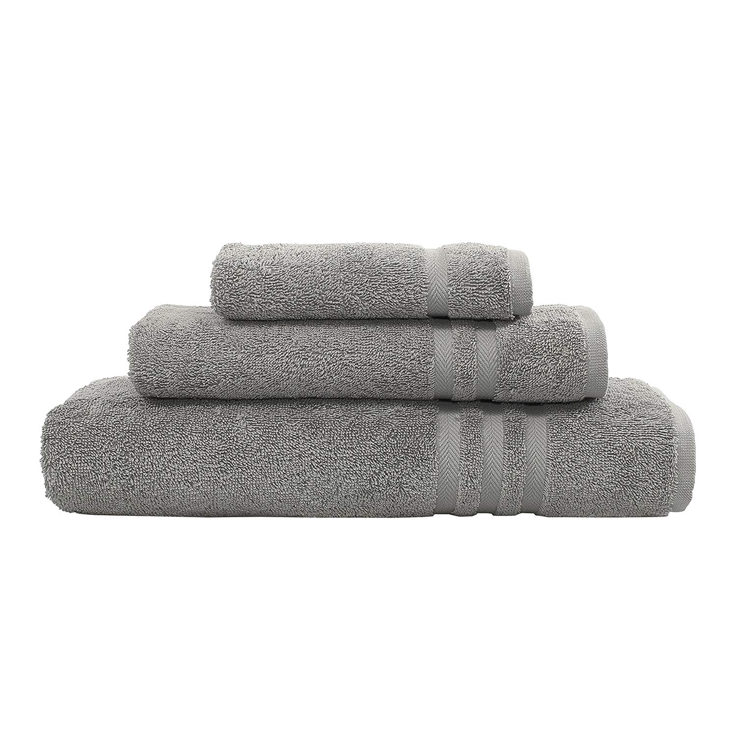 - 3-piece towel set includes 1 bath towel, 1 hand towel, and 1 washcloth