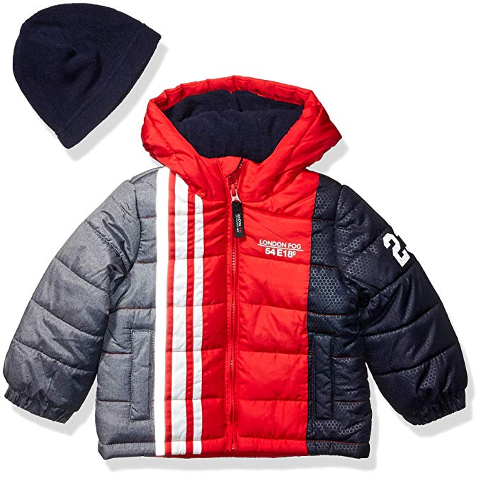 LONDON FOG Baby Boys’ Color Blocked Puffer Jacket Coat with Hat – Link