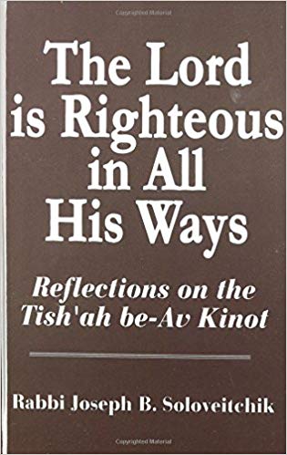 “The Lord is Righteous in All His Ways is Rabbi Soloveitchik’s answers to many questions relating to this most important day in the Jewish calendar. What is the role of Tishah be-Av at the beginning of the twenty-first century, close to two thousand years after the destruction of the second Temple? What is the halakhic character of Tishah be-Av? What themes in the Kinot (liturgical poetry) recited on that day resonate in modern times? How should the Jew respond to personal and national catastrophe? What is the relationship between the Holocaust and Tishah be-Av?”