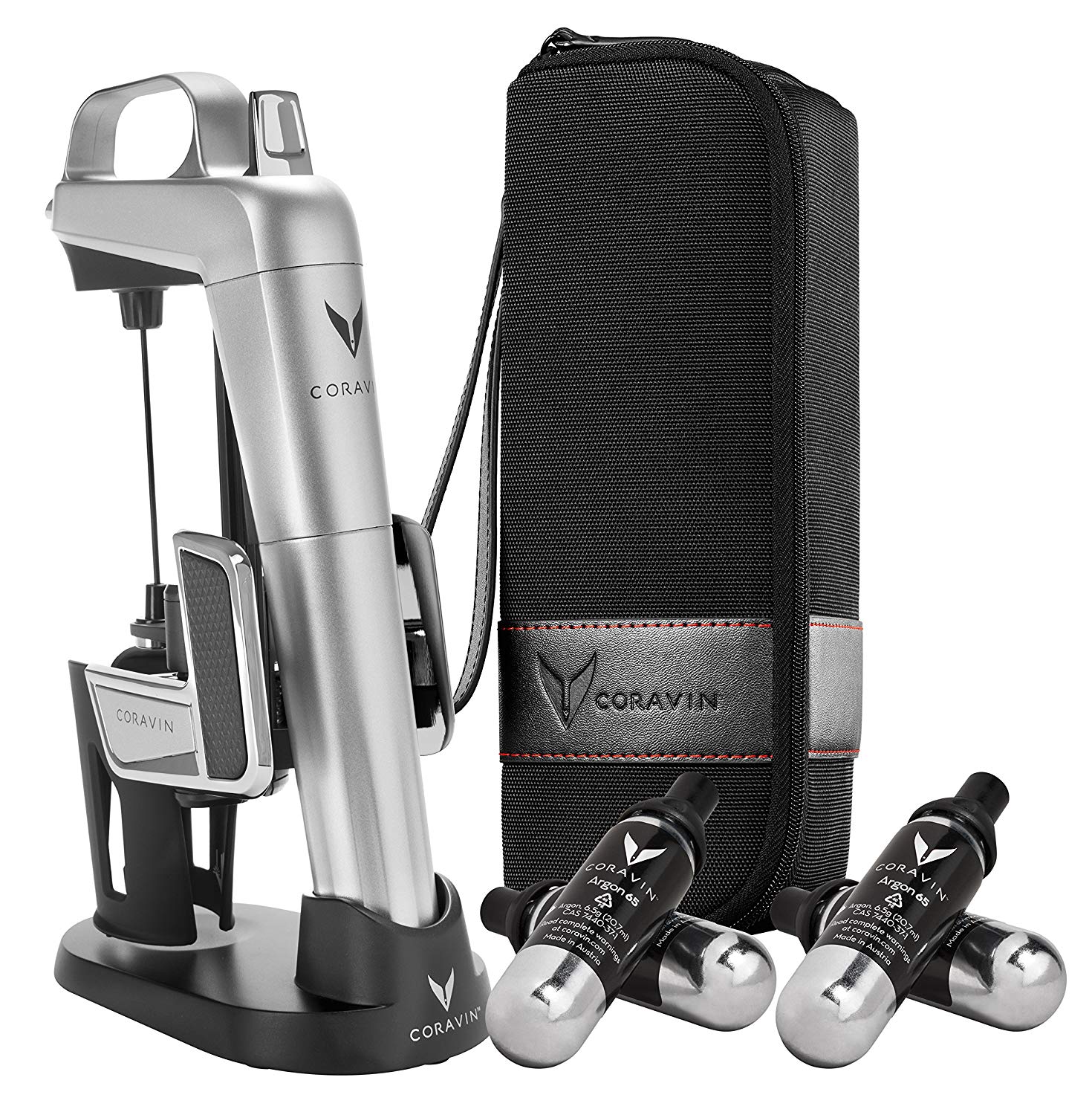 - EVERYTHING YOU NEED TO GET STARTED – Set includes the Coravin Model Two Elite Wine Preserver, 4 Coravin Capsules (each capsule allows you to pour up to (15) 5-ounce glasses of wine), display base and a durable and stylish carry case.