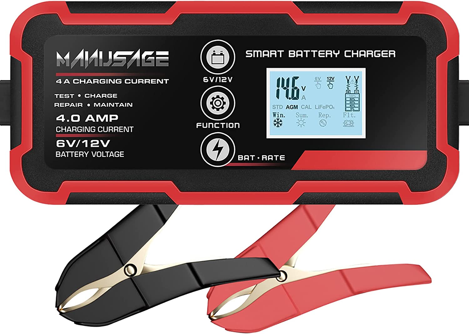 - 【Smart Charge for Dead Batteries】 – Charges batteries down to 1 volt! No need to manually charge the dead battery, Manusage intelligent automatic battery charger desulfator automatically detects the voltage condition, and automatically charges the dead battery with a trickle to restore the battery vitality!