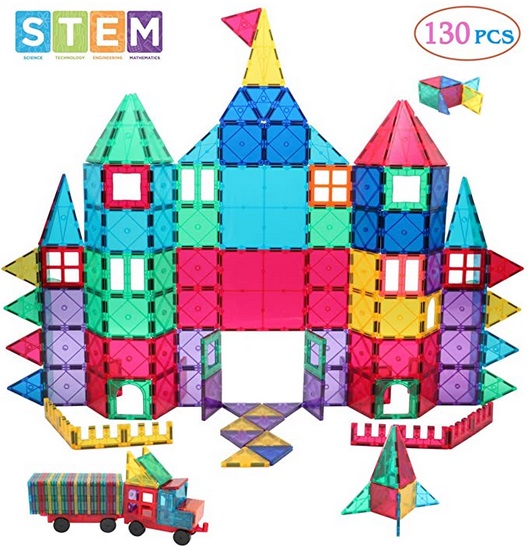 Manve Magnetic Building Blocks Tiles Toy, 130-Piece Set – Link
