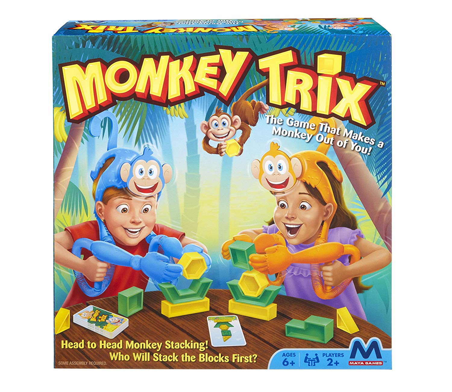- Family game night just got even better! Pick your monkey, collect your blocks and turn over the top card. Be the first monkey to build the stack and take the card to win the round. Collect three cards to win the game. This game is recommended for ages six plus, but friends and family of all ages will love monkey Trix!