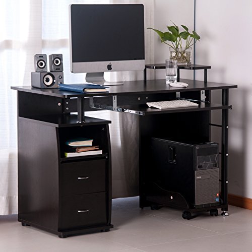 - Features 2 drawers and a pull-out keyboard tray for extra storage space