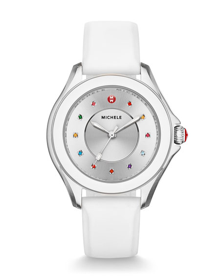 - MICHELE watch from the Cape Collection, featuring sparkling markers and wear-anywhere strap—playful luxury has never been lovelier.