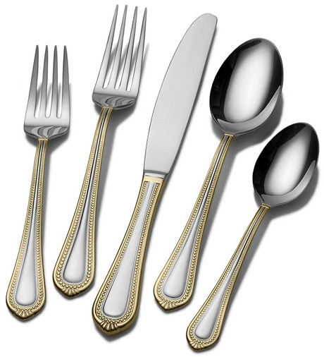 Mikasa Regent Bead Gold 65-Piece Stainless Steel Flatware Set, Service for 12 – Link