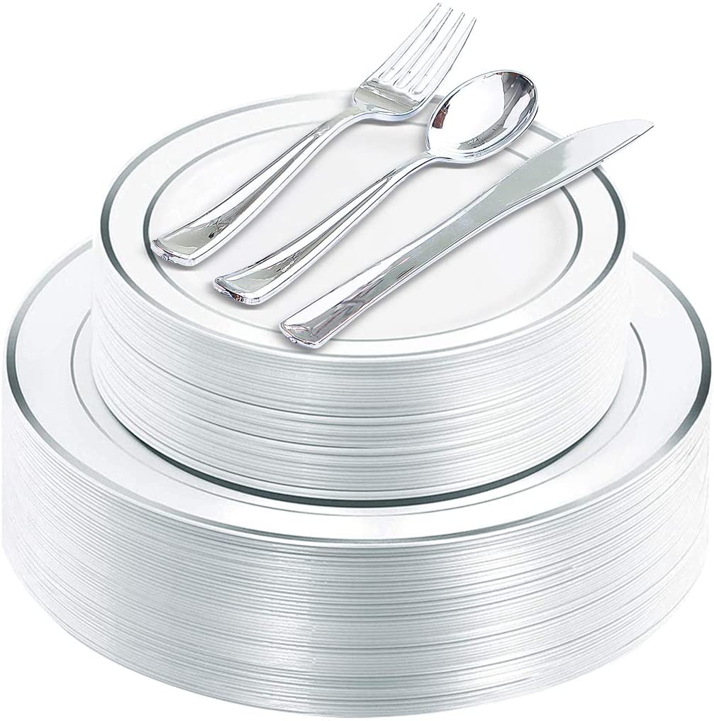 - EASY USE: Host an elegant event, impressing friends with lavish dinnerware and silverware, while making cleanup easy with these plastic plates and utensils or have an intimate family get-together celebrating not having to do the dishes.(noticed:can hand wash but not in the dishwasher! )