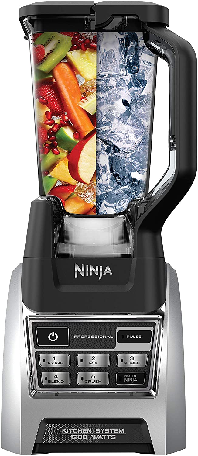 - Includes: 1200-Watt Motor Base, 72 oz. Total Crushing Pitcher, 64 oz. Food Processor Bowl, Dough Blade, (1) 18 oz. Nutri Ninja Cup, (1) 24 oz. Nutri Ninja Cup, (2) Spout Lids, Pro Extractor Blades Assembly, 25-Recipe Inspiration Guide