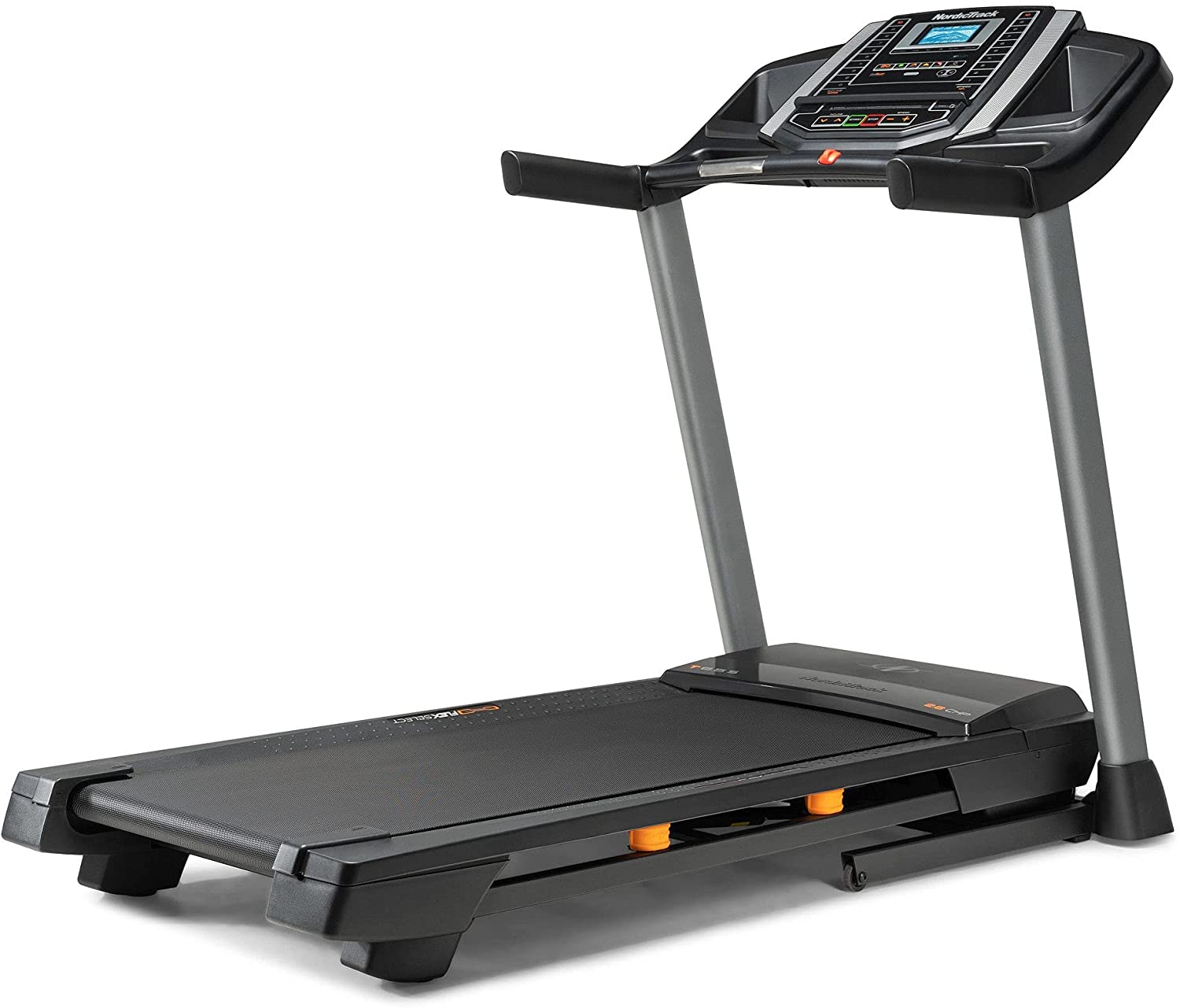 - Innovative SpaceSaver design with EasyLift Assist means your treadmill can fold up after your run for compact, simple storage; Auxiliary music port and dual 2-inch speakers provide entertainment