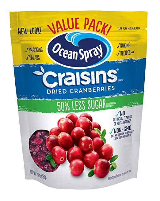 Ocean Spray Craisins Dried Cranberries, Reduced Sugar, 20 Ounce Value Pack – Link