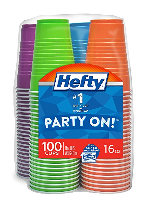 - Made in the USA, this pack includes 100 16-ounce disposable plastic party cups in assorted colors. Every package includes one Box Top to help you earn cash for your school.