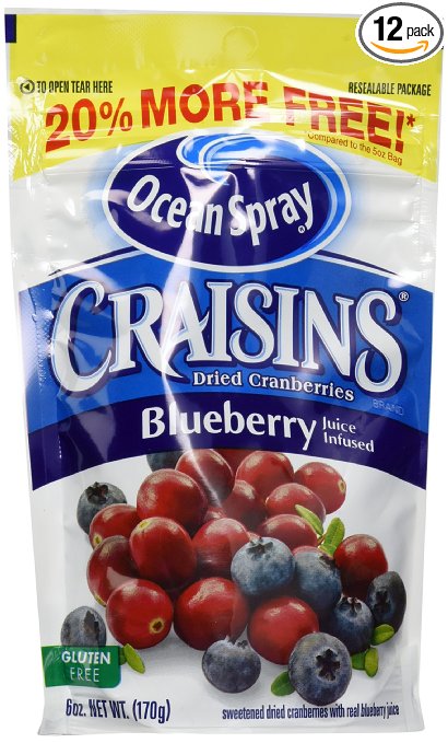 Pack of 12 Ocean Spray Craisins Dried Cranberries Blueberry Juice Infused 6 Ounce Packages – Link