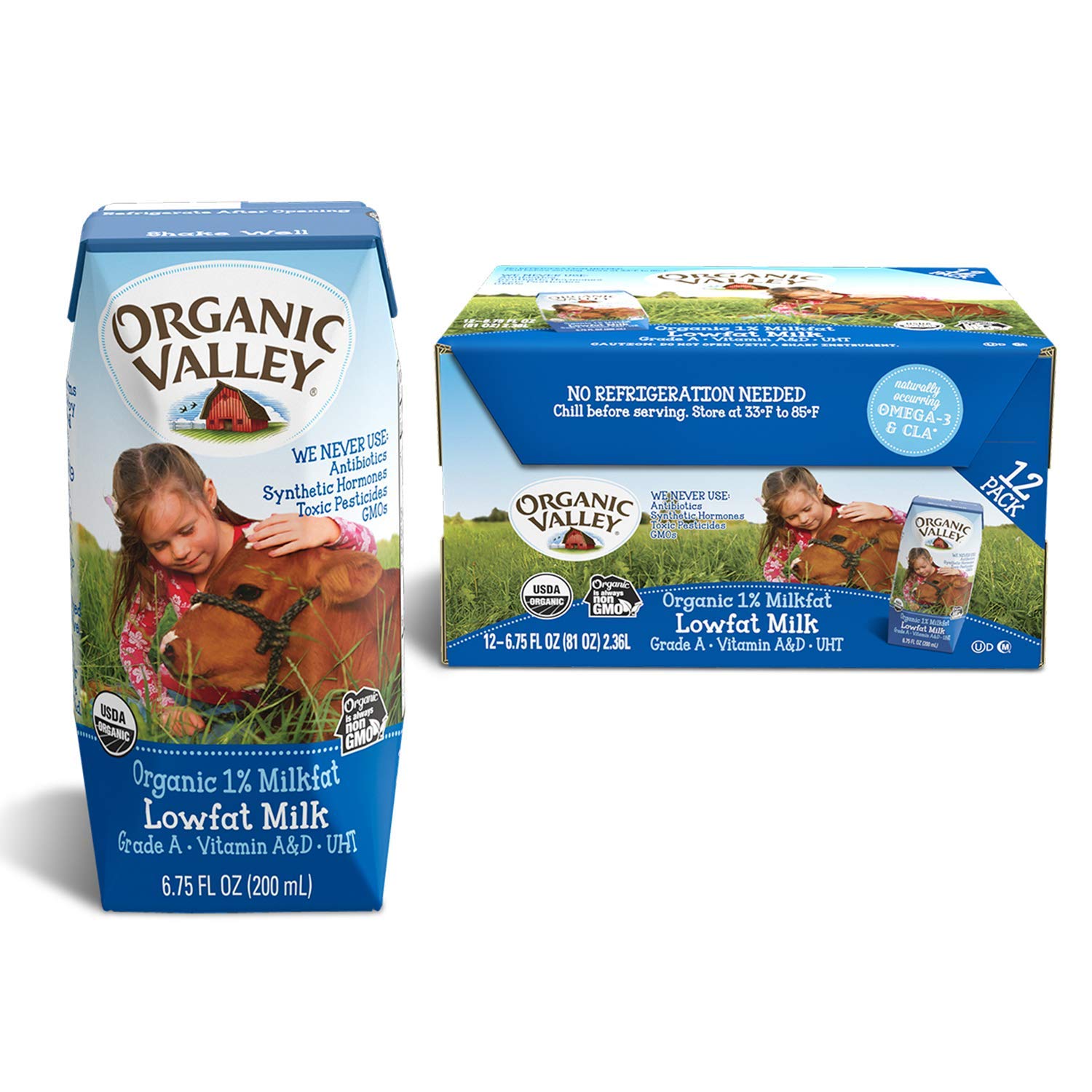 Pack of 12 Organiac Valley, Organic Milk Boxes, 1% Plain Lowfat Milk – Link