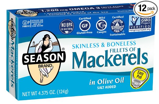 Pack of 12 Season Fillets of Mackerel in Olive Oil, 4.375-Ounce Tins – Link