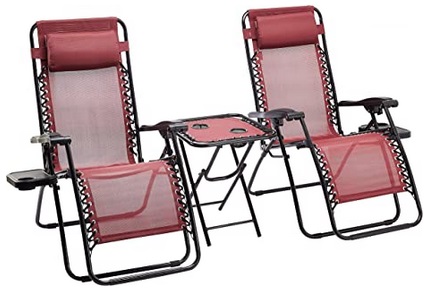 - 2-pack of zero-gravity chairs with side table for ultimate comfort and convenience when relaxing outdoors