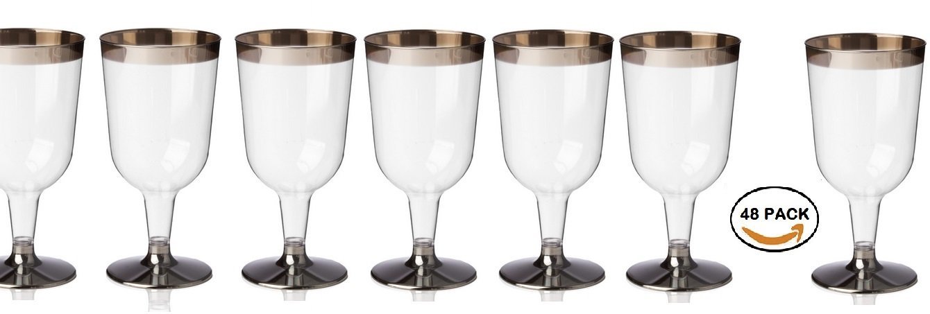 Pack of 48 Silver Rimmed Clear Plastic Wine Glasses – Link