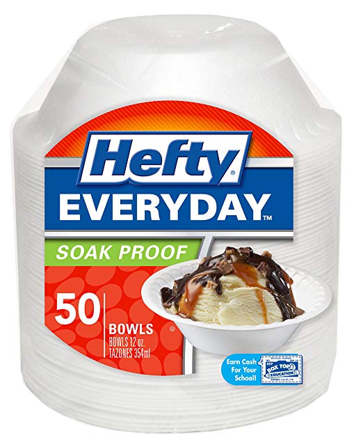 - This pack includes 50 disposable 12-ounce foam bowls. Every package includes one Box Top to help you earn cash for your school.