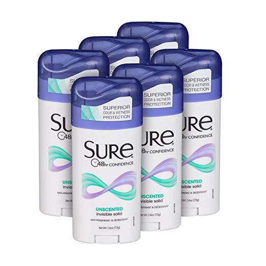 Pack of 6 Sure Women’s Invisible Solid Antiperspirant Deodorant, Unscented, 2.6 Ounce – Link