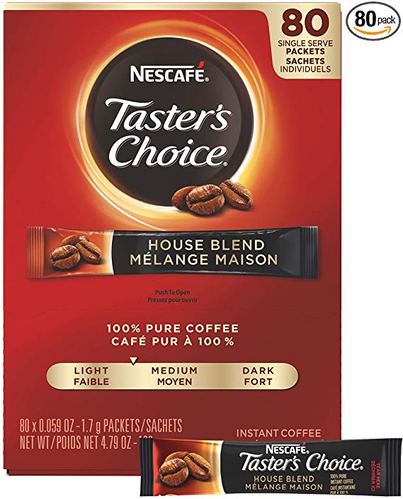 Pack of 80 Nescafe Instant Coffee Packets, Taster’s Choice Light Roast, 1.7 g Singles – Link
