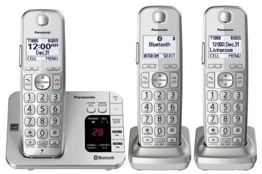 Panasonic Link2Cell Bluetooth Cordless Phone with Answering Machine- 3 Handsets – Link