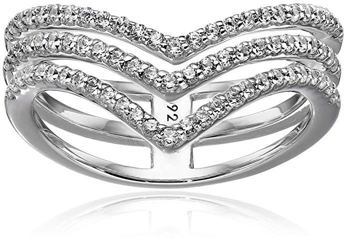 Platinum-Plated Sterling Silver Swarovski Zirconia Fashion Forward Open Trio Ring – Link