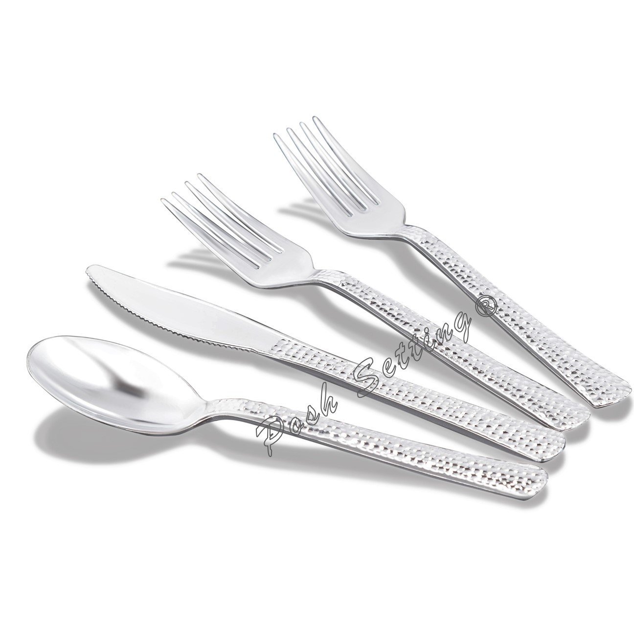 Posh Setting Hammered Effect Design Silverware, Silver Like, Heavyweight Disposable Plastic Silver – Link