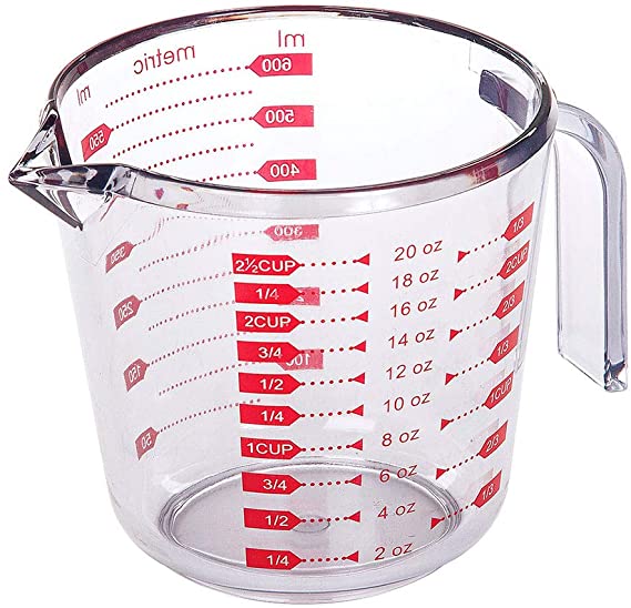 - This cup measures up to 2. 5 cups, 20 oz. Or 600 ml