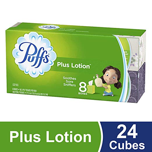 Puffs Plus Lotion Facial Tissues, 24 Cube Boxes – Link
