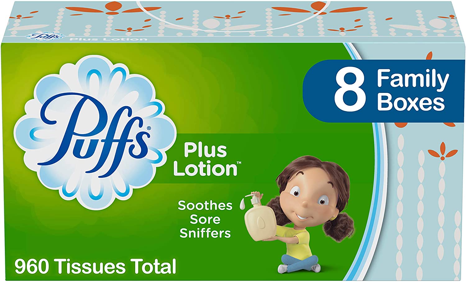 Puffs Plus Lotion Facial Tissues, 8 Family Boxes – Link