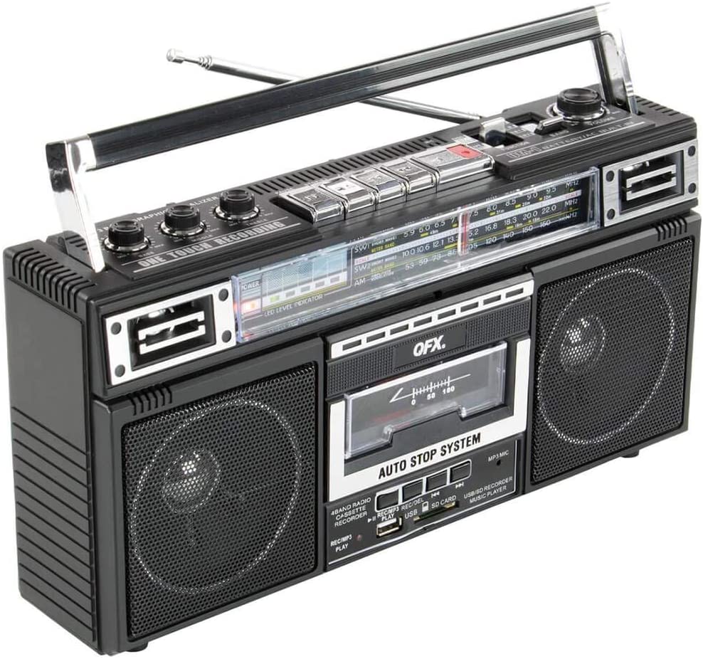 QFX ReRun X Cassette Player Boombox with 4-Band Radio, MP3 Converter, and Bluetooth – Link