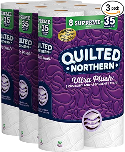 - Each pack contains 24 Supreme Rolls of Quilted Northern Ultra Plush toilet paper