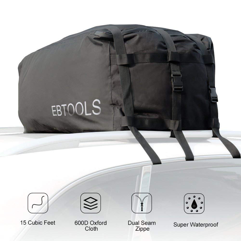 - [15 Cubic Feet Large Size Capacity] – The Roof Bag overall size is 39.4”x17.3”x23.2”. It has 218L storage space and can safely hold up to 100 pounds of cargo. You’ll free up lots of space inside your vehicle while keeping your cargo protected.