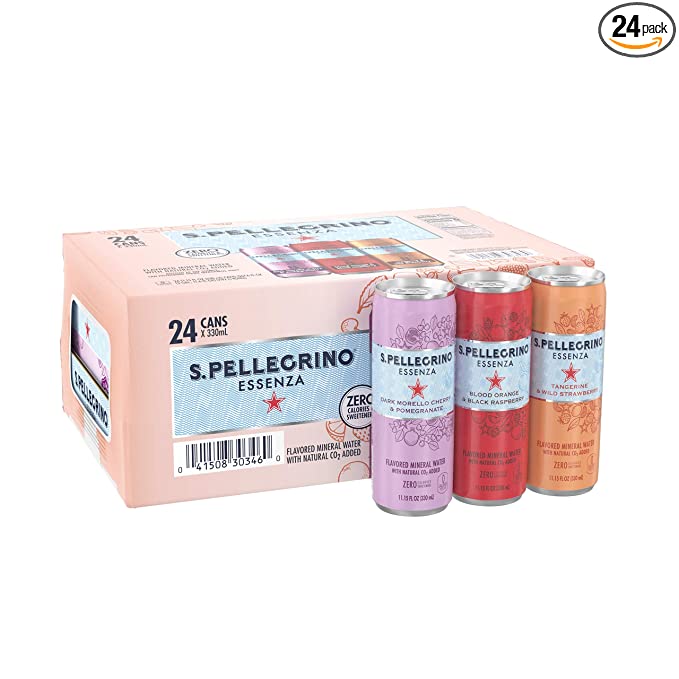 S.Pellegrino Essenza Flavored Mineral Water, Variety Pack 11.15 Fl Oz. Cans (24 Pack) – Link