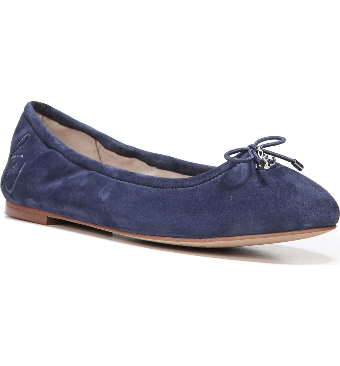 - A delicate logo charm adorns the bow-trimmed toe of a charming ballet flat.