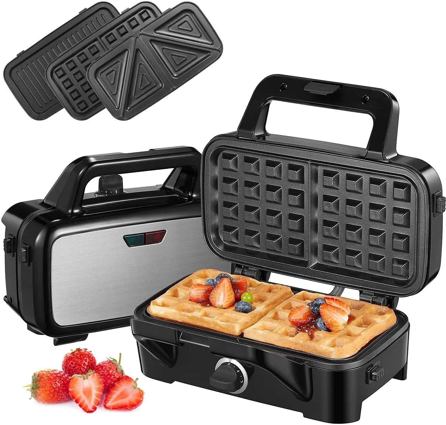Sandwich Waffle Maker 3 in 1, 1200W Waffle Iron, Panini Press Grill – Link