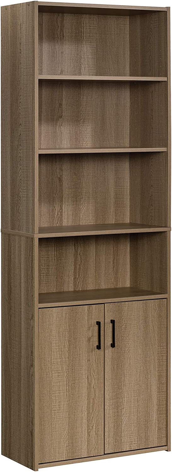 Sauder Beginnings Bookcase with Doors, L: 24.65″ x W: 11.65″ x H: 71.14″, Summer Oak Finish – Link