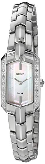 Seiko Women’s Tressia Solar Silvertone Watch with Diamond Accents – Link