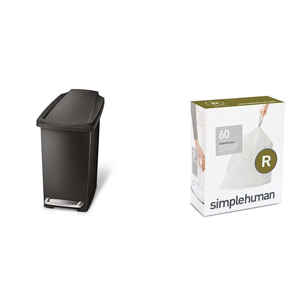 simplehuman 10 litre slim step can black plastic + code R 60 pack liners – Link
